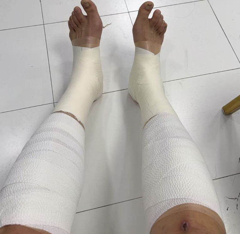 赛后媒体人“赵探长”晒出了一张翟晓川双腿缠满绷带的照片,并表示:川队这把是真拼了,北京北汽男篮队长翟晓川两条腿全拉伤,绑着绷带打了20分钟,帮球队拿下一场不容易的客场胜利。